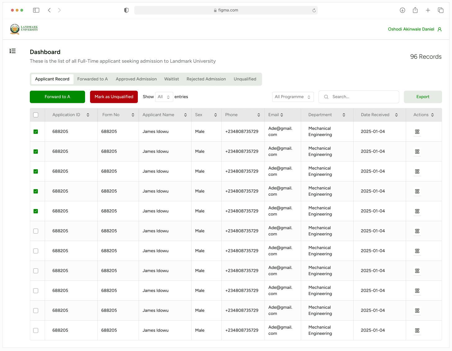 Landmark University is a private institution in Nigeria committed to educating students across diverse fields for a better future. However, many of its processes were scattered across multiple digital platforms, with some being repetitive and others underutilized due to usability challenges, while certain processes remained paper-based. This project aimed to unify and digitize these workflows into a cohesive platform that streamlines all of the University's operations across five core modules: Admissions, Student Portal, Staff Portal, Parent Portal and HR Management