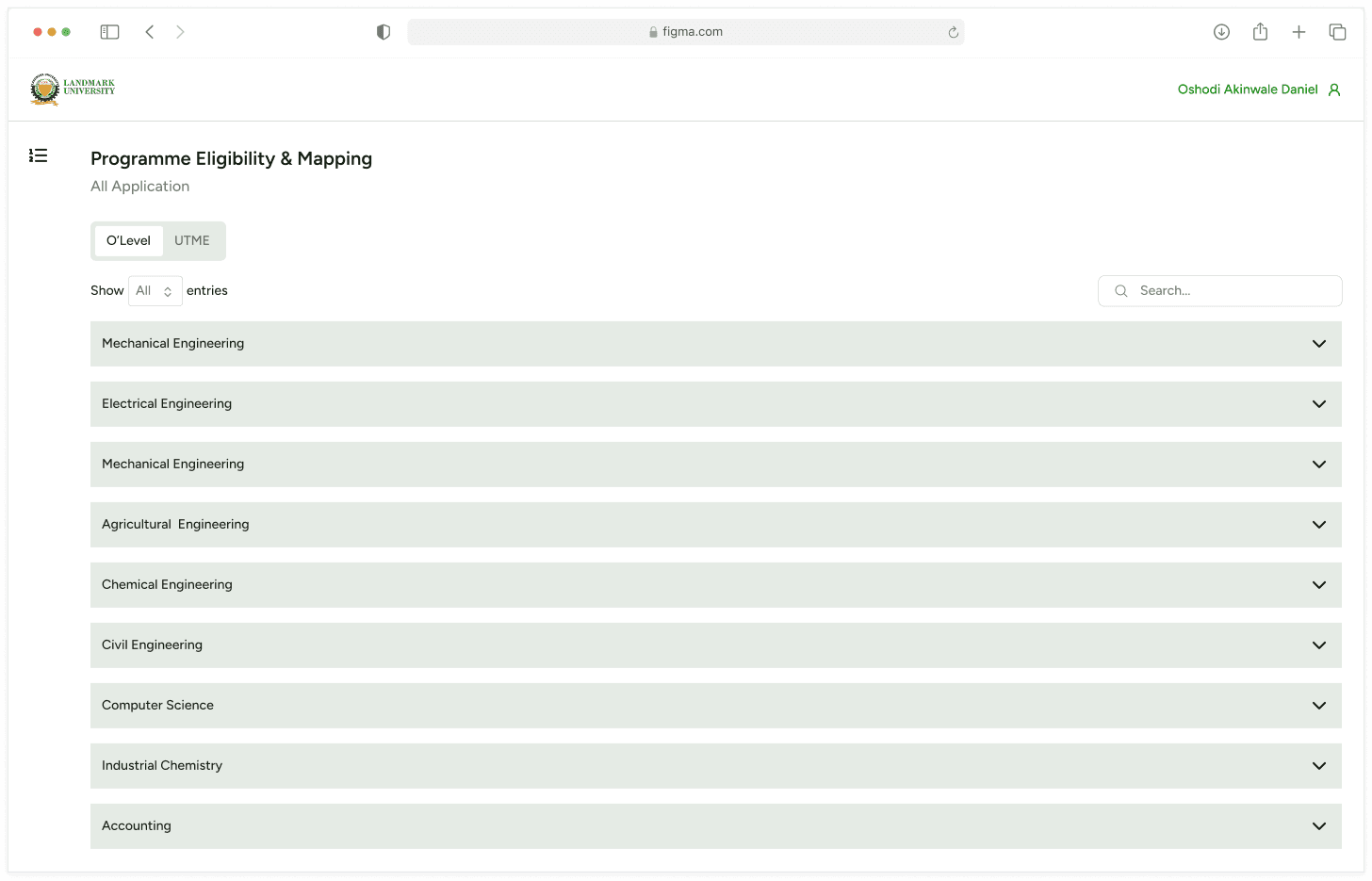 The previous system allowed students to apply for any programme through an unfiltered dropdown, regardless of whether their exam subject combinations met eligibility requirements. This led to numerous ineligible applications that admissions staff had to manually review and reject. I designed an eligibility mapping feature that enables administrators to configure programme availability based on examination subject combinations. Students now only see programmes they're qualified for during the application process, preventing ineligible submissions before they occur.